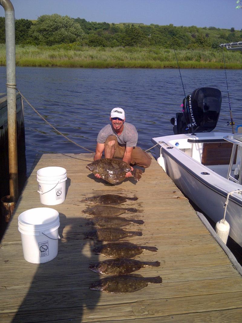 We hit all the usual places for qaulity fluke. Limited the boat on seabass and Matt and I had 6 keeper fluke with 2 pushing 7lbs. Poison tail jigs with curly otter tails in white backed up by bait/ strips of mackerel, fluke . belly, porgie or bluefish worked as did putting spearing with the teaser. Blue poision tail worked the best with pink coming in second.