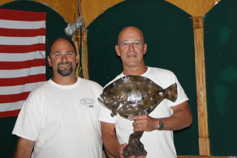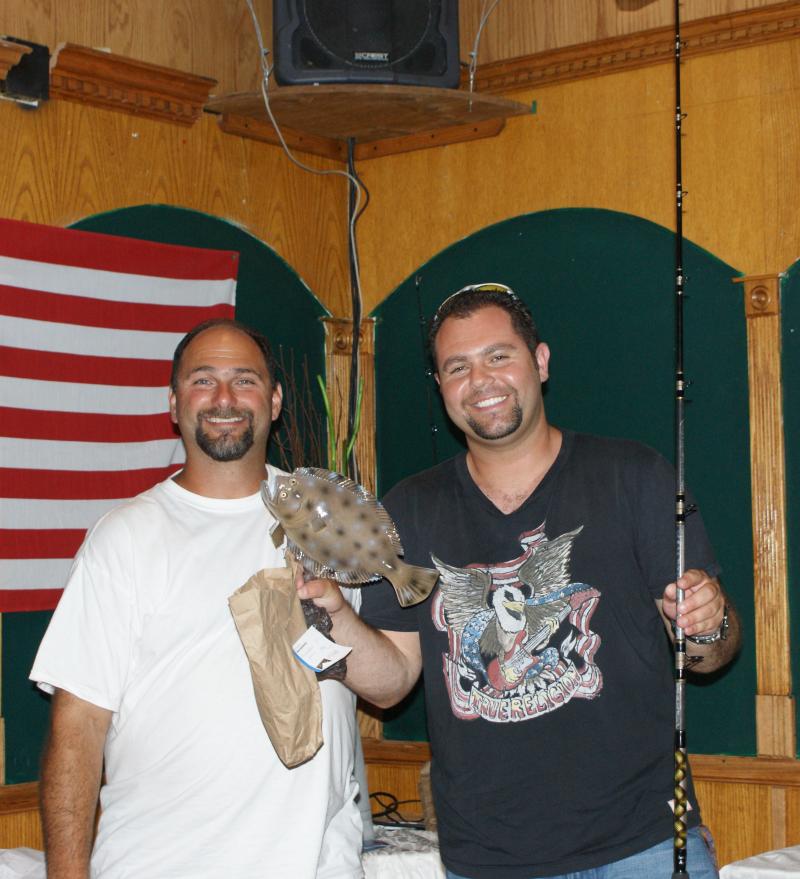Mike Redmond and his Second place fluke of 6.55lb fluke and Mike Cotter with a 4.10lber sea bass that took first in the bonus division.