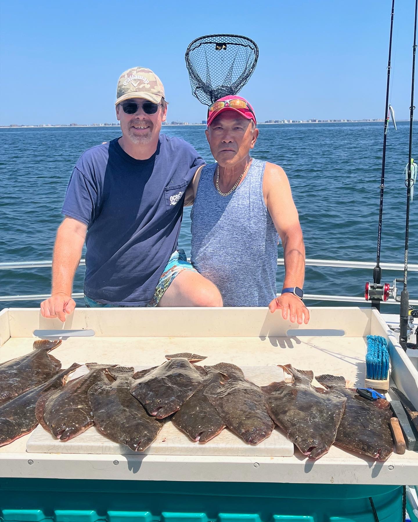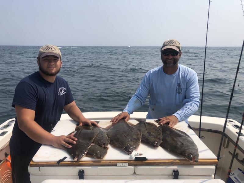 Montauk fluking still solid before the storms Mike and Matt with 5 keeper fluke to 6 lbs taken on the Montauk Star 8/17/21