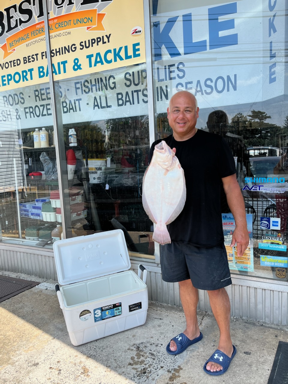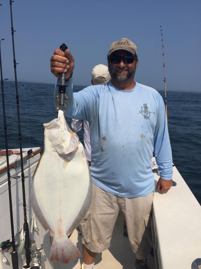 Fishing the waters of Montauk in Late June produced a couple of really nice fluke two pool winners, Heres an 8.7 lb fish from the Hammer time.