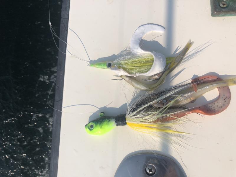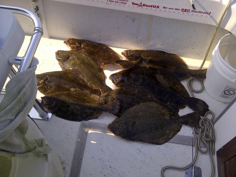 We hit all the usual places for qaulity fluke. Limited the boat on seabass and Matt and I had 6 keeper fluke with 2 pushing 7lbs. Poison tail jigs with curly otter tails in white backed up by bait/ strips of mackerel, fluke . belly, porgie or bluefish worked as did putting spearing with the teaser. Blue poision tail worked the best with pink coming in second.