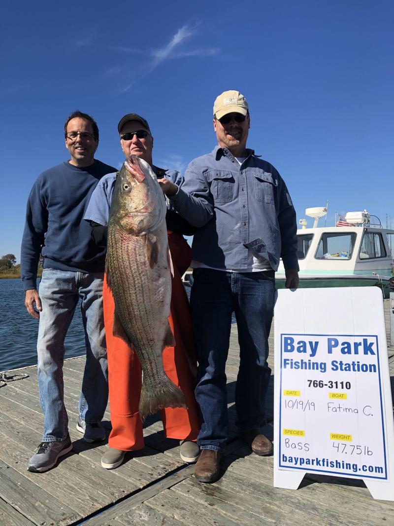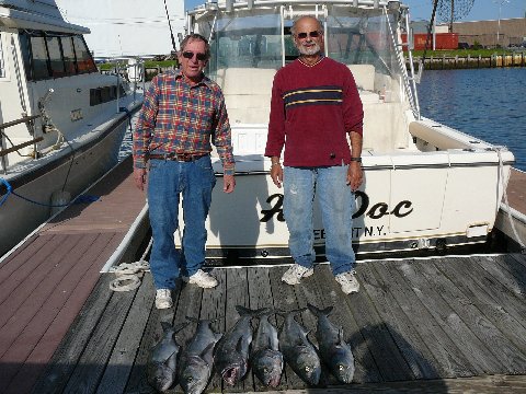 Rico and Anthony on the "Goldfish" fished the Rockaway Reef as well and did good with Porgies and seabass , then headed in fished in the bay for Bass, clam bellying fish to 11.75 lbs