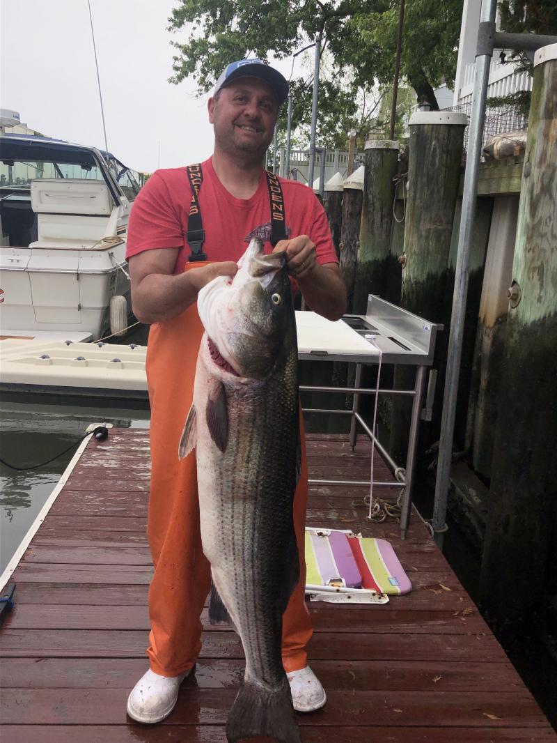 The club was well represented on the Striped bass grounds as The Reel Inn, Hi-Doc, and Forbelz II were all on the hunt and had great success with jigs & trolled Mojos. Mike made it out there early and found the fish off of the Jones beach west bathhouse just west of the needle. A quick courtesy call to the other club members out there and all three boats did a bang up job with the bass up to 36 inches plus. The largest were taking the mojos but There were fish to 33 inches jigged up, all in only 25 ft of water The fish were anywhere in the water column and busting on top also! All reported that it was the best day they've had with bass!